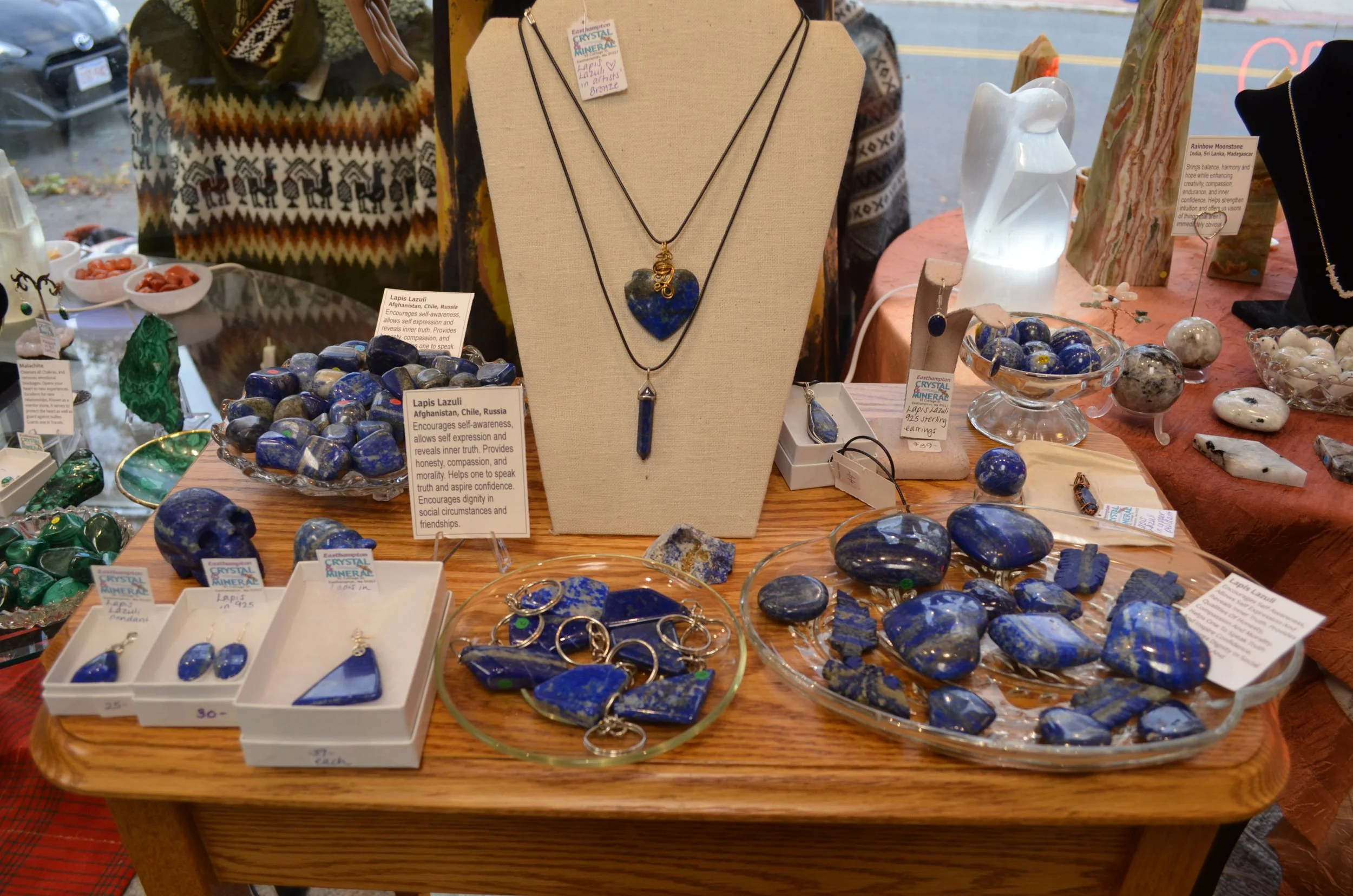 From handmade Alpaca sweaters and blankets from Ecuador to boxes of new and unusual Crystals acquired at a local Gem Shows and Wholesalers in Massachusetts.